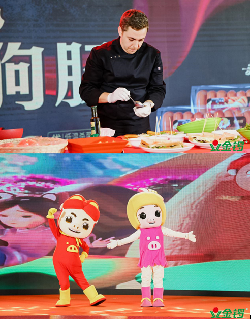 此外,在德斯克德式雞肉熱狗腸新品發(fā)布環(huán)節(jié),金鑼還邀請到了外籍大廚Fabio Falanga,以新品為食材,現(xiàn)場制作了精美的食物給現(xiàn)場經(jīng)銷商品嘗,經(jīng)銷商紛紛豎起大拇指點贊。哈啰伙伴代言人、人氣動漫豬豬俠也來到了新品發(fā)布會現(xiàn)場,用歡快的舞蹈表演助陣哈啰伙伴新品發(fā)布。